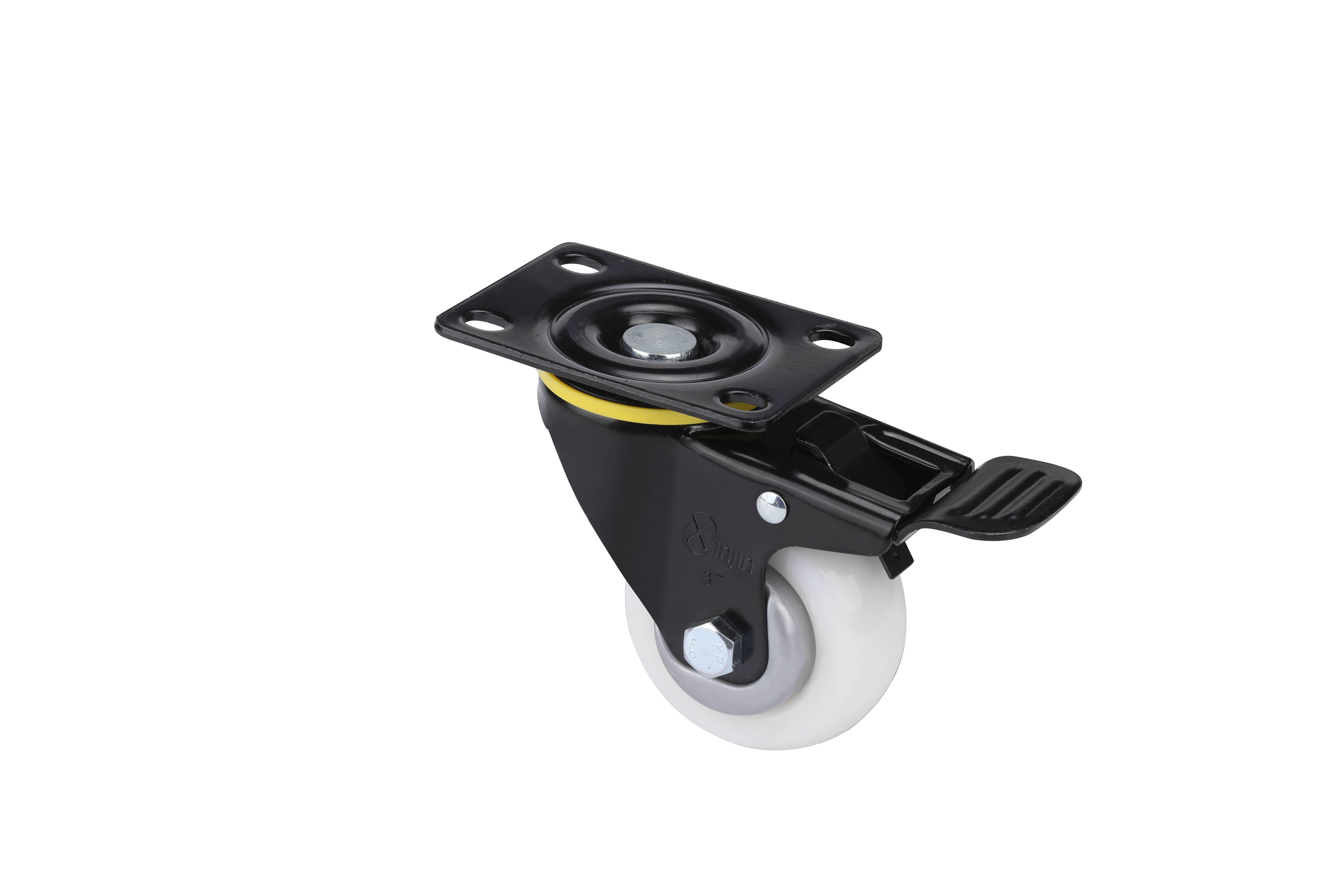 3寸精密型高强度白尼龙TPA平板万向带刹车脚轮