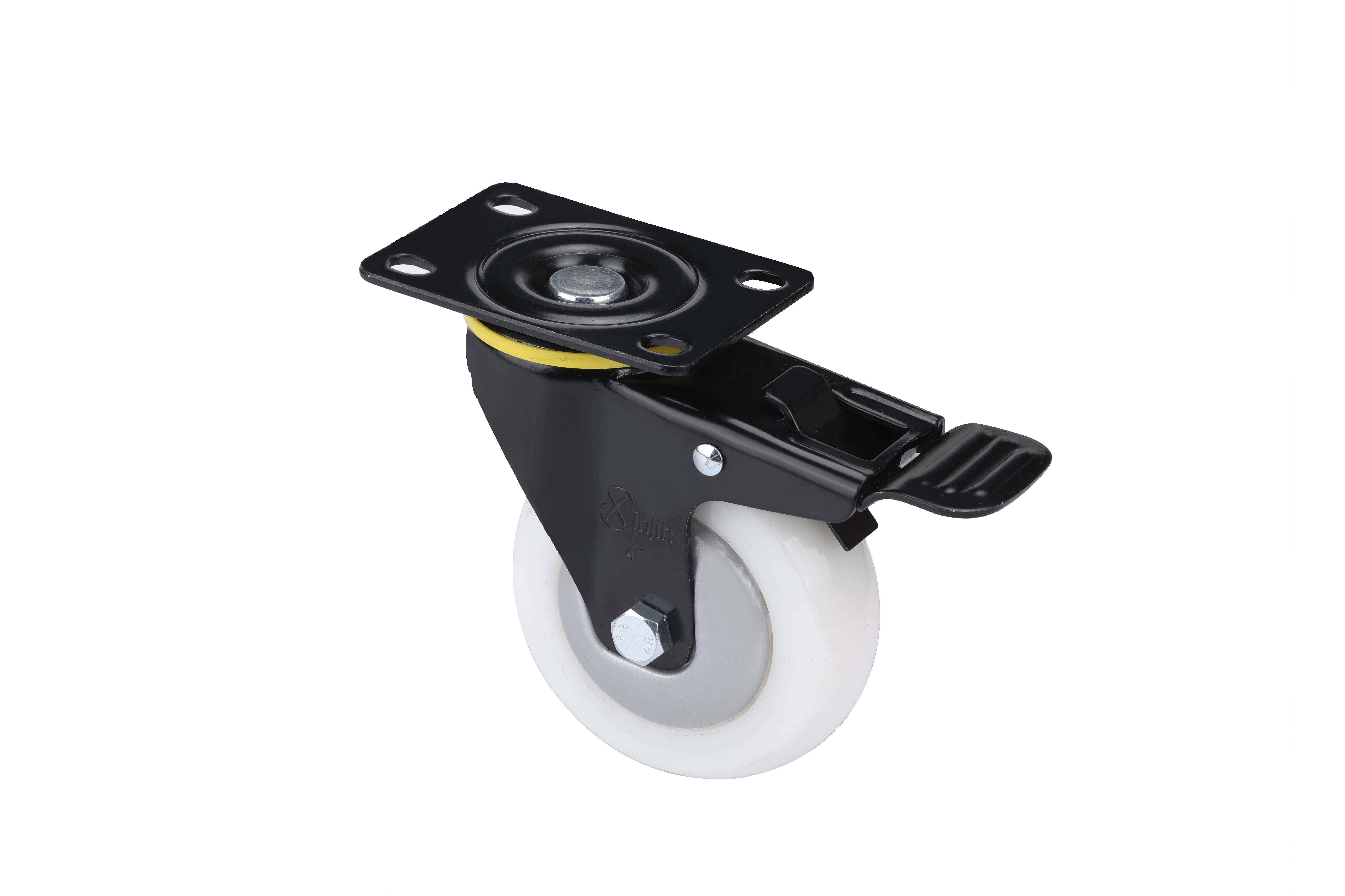 4寸精密型高强度白尼龙TPA平板万向带刹车脚轮