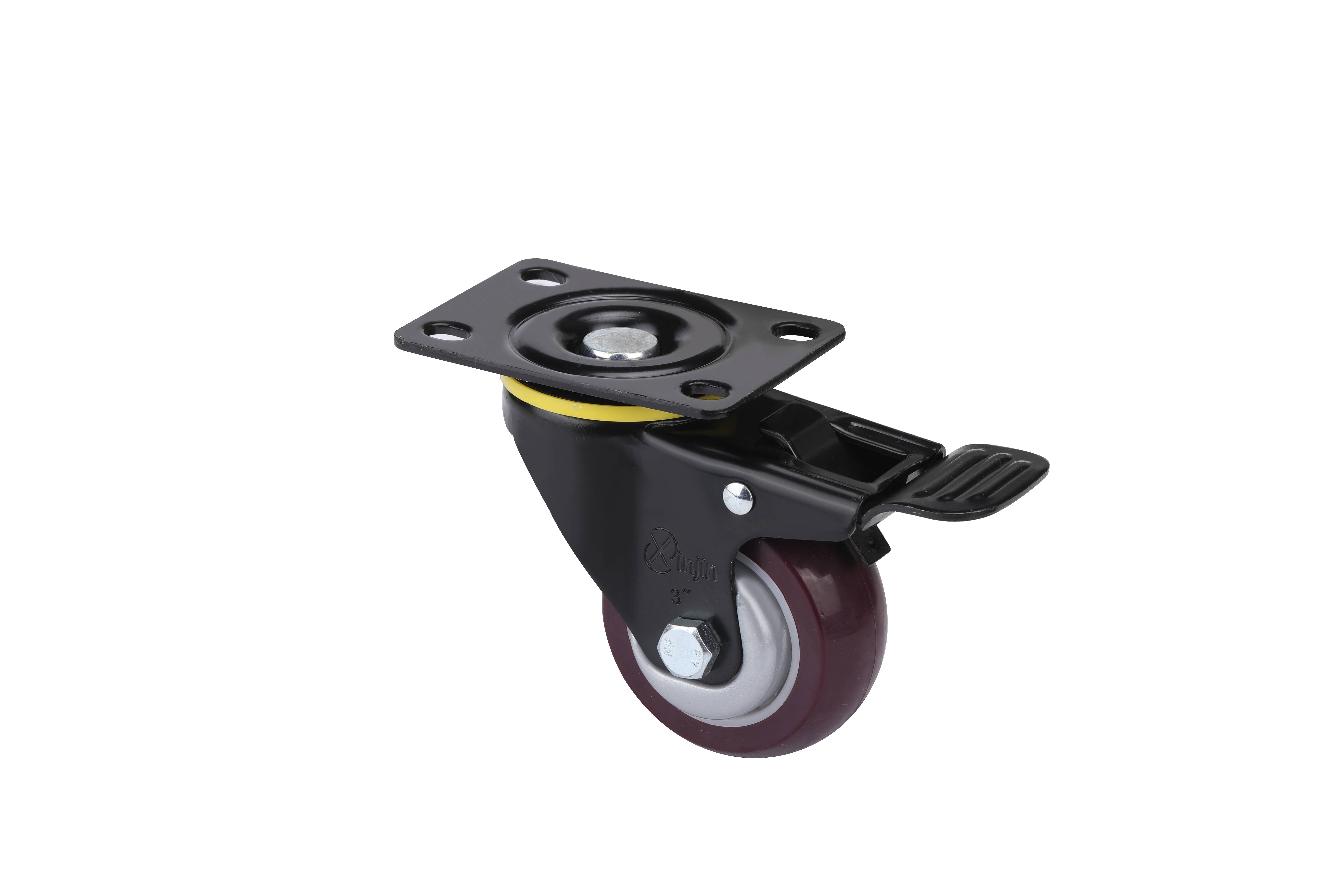 3寸精密型高强度聚氨酯TPU平板万向带刹车脚轮