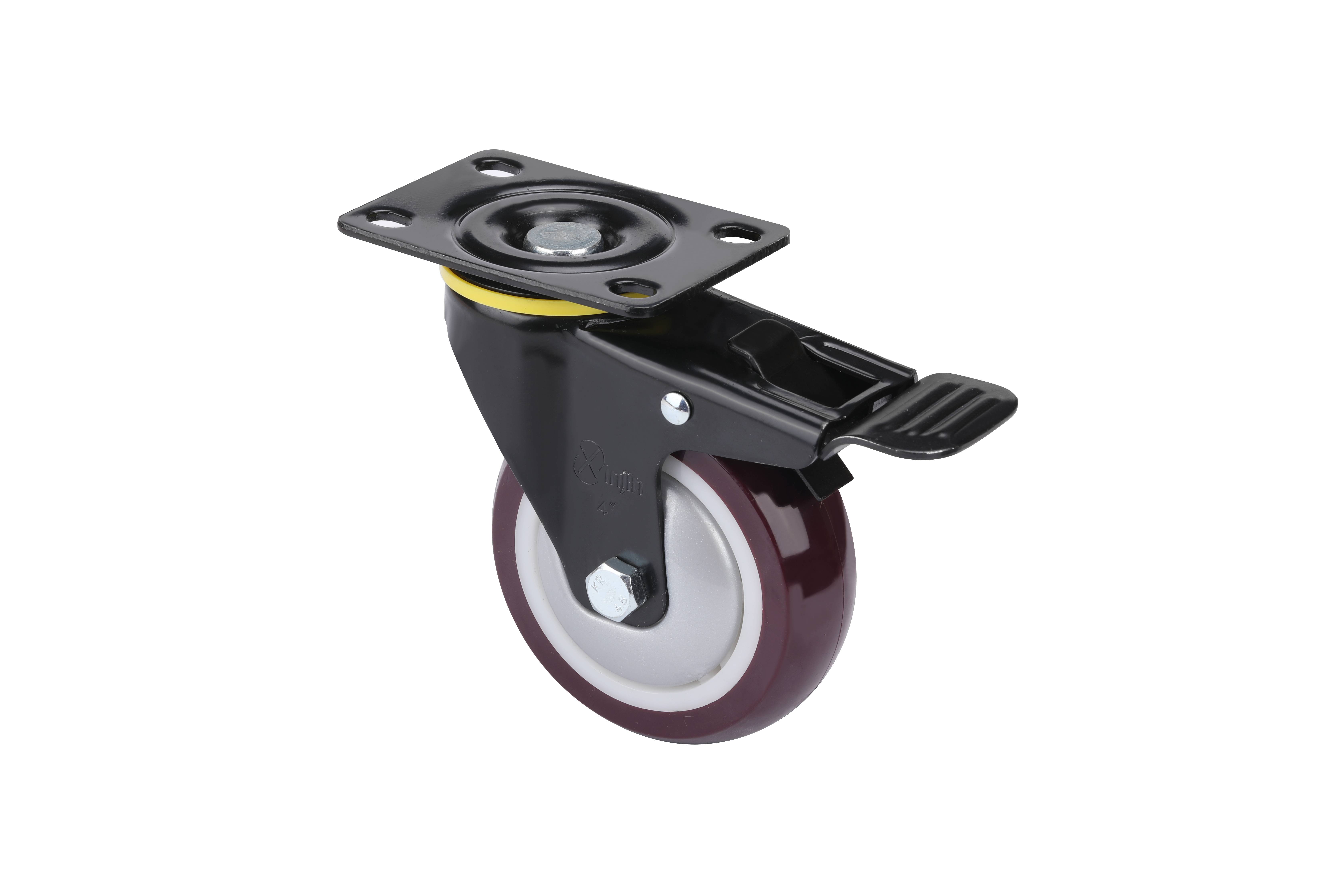 4寸精密型高强度聚氨酯TPU平板万向带刹车脚轮